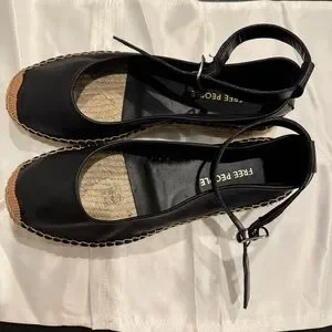 Free People Mason Espadrille Ballet Flats Black Leather Ankle Strap Size EU39/US 8.5 New