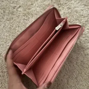 Coach Beige Monogram Zip Wallet with Pink Trim