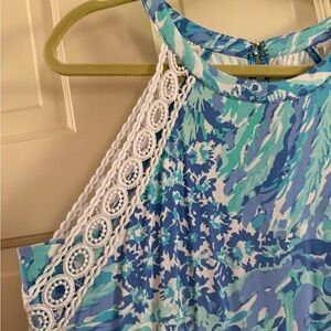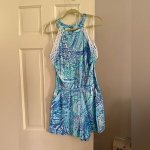 Lilly Pulitzer Pink-Tag Floral Blue & Aqua Halter Romper