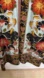 Beautiful sage blue base with bold floral print in red, mustard, black and cream. Long with full sleeves. Great for dressing up or events.