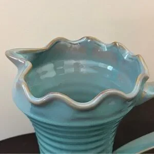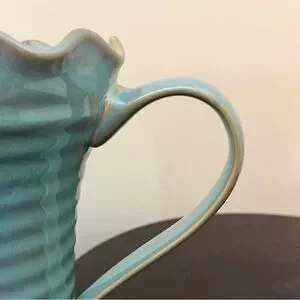Hand Crafted WCL 1970s Scalloped Rim Ribbed Pottery Ceramic Pitcher