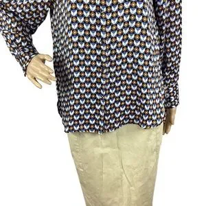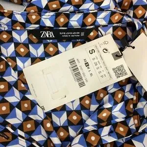 ZARA Geometric Print Button Down Blouse Blue Brown Small