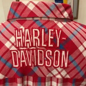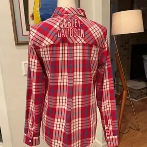 Harley-Davidson Vintage Red, White and Blue Plaid Button-Front Shirt
