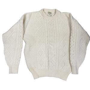 Vintage LL Bean Cable Knit Sweater Mens L Tall Beige Wool Fisherman Made in USA