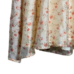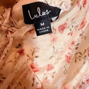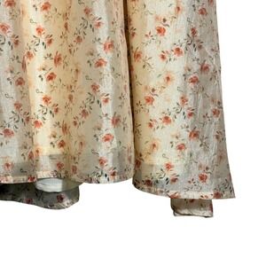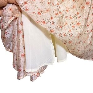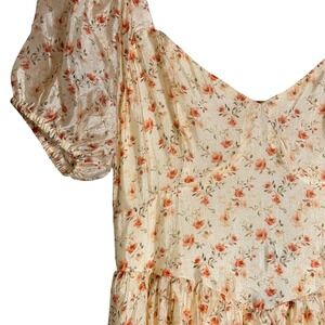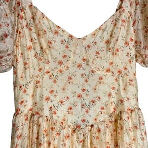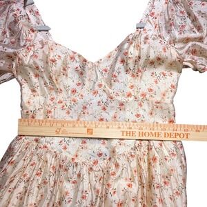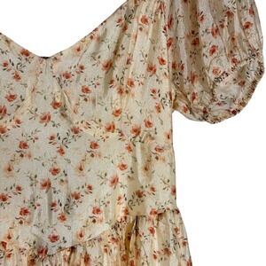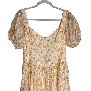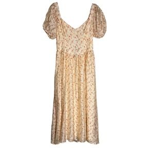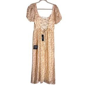 Lulus Floral Puff Sleeve Lace Up Back Midi Dress Womens M Ivory Cottagecore