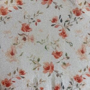 Lulus floral midi dress in a cream and orange botanical print with a subtle burnout texture, short puff sleeves, a sweetheart neckline, lace-up open back, midi skirt, fully lined. Perfect for garden parties, weddings, or brunch, with cottagecore aesthetic with modern details.