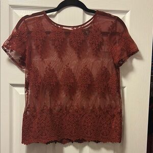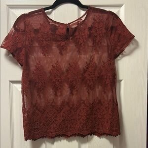 Forever 21 Sheer Lace Embroidered Short-Sleeve Top - Rust