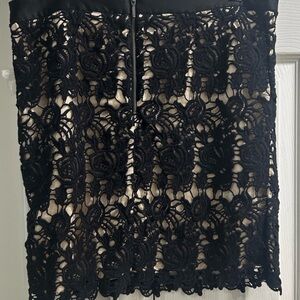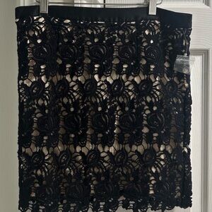 Willi Smith Black Lace Skirt Nude Lining Floral Crochet Overlay Size 10 Elegant
