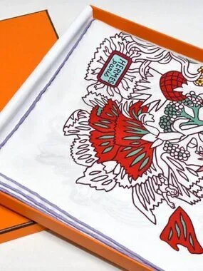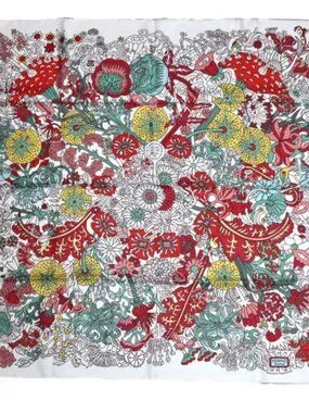 HERMES Carre 90 Scarf CACHE CACHE Fleuri Silk w/Tag White Flower by Pierre Marie
