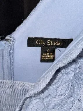 124 - City Studio Dusty Blue Lace V-Neck Dress