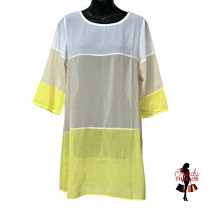 Boutique NEW Sheer Colorblock Mini Dress Sleeves Swim Cover-Up Small Medium NWT