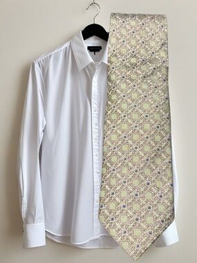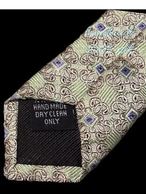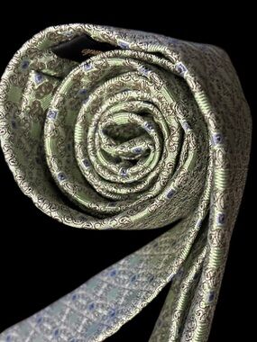 light green patterned silk tie. Elegant geometric design for refined outfits. Smooth silk construction that adds subtle sheen and color to your look. Perfect for formal and business occasions.