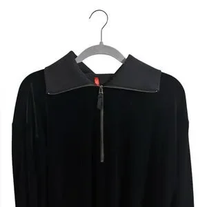 Spanx Black Velvet Zip Up Collared Sweatshirt XL