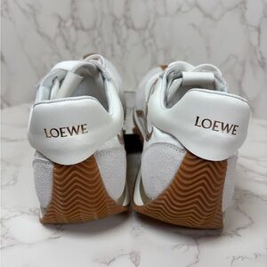 These Unisex GYM SHOES: White and Tan Sneakers w/Iridescent Ribbon Accent no box are in EXCELLENT CONDITION, no snags; no holes; no fading areas; NEVER worn. But still previously lovingly cared for; so it’s a preloved (used) item, some normal and minimal wear is expected. Depending on device used, color may vary. Review pics as they’re part of the description. Sold as is, no refunds. All auction bids/wins are final, no cancellations.