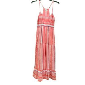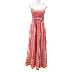 Liverpool LA Tiered Summer Maxi Dress Racerback Cotton Stripe Coral XS NWT