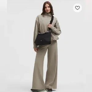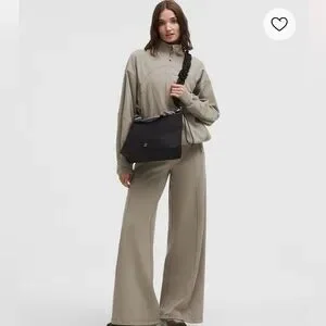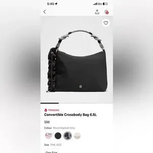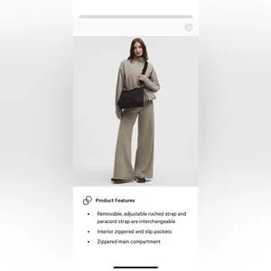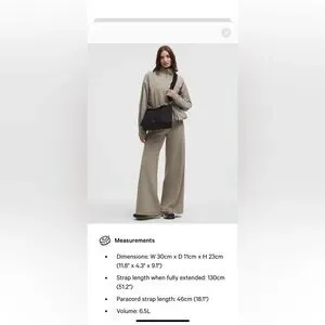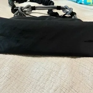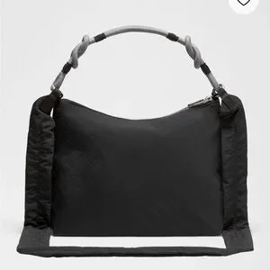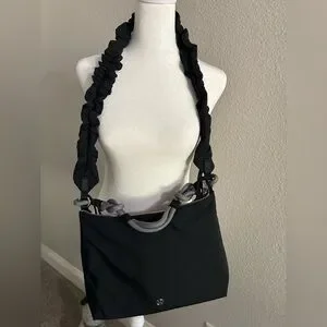 Contemporary black shoulder bag with a knotted top handle for easy carrying. Lightweight nylon design offers everyday versatility. Secure zip closure protects essentials. Clean silhouette pairs well with casual and polished looks. Used for a week or so. Like new condition. Measurements in picture. 6.5L
