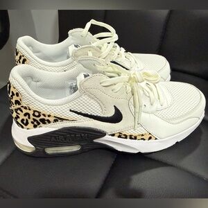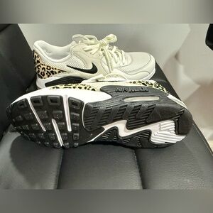 Nike Airmax Women’s White Sneakers with Black Swoosh and Leopard Accent sz 7.5