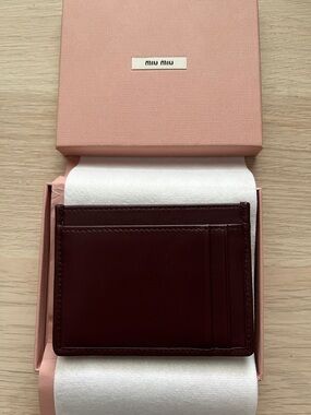 Miu Miu Burgundy Quilted Leather Card Case with Gold Logo