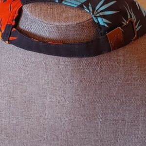 - black hat with colourful leaf print