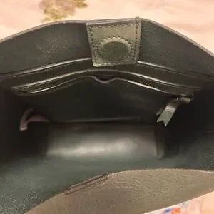 Elegant Madewell shoulder bag in deep forest green leather. Smooth pebble texture with a relaxed bucket silhouette. Single adjustable strap for comfortable carry. Subtle brass hardware accents. Versatile style for everyday wear.