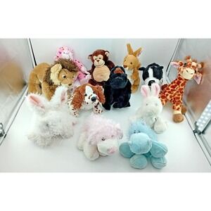 Lot of 12 Russ Berrie Gantz Plush Stuffed Animals Monkey Kangaroo Rabbit Giraffe