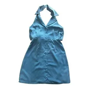 Lulu’s Extremely Chic Blue Collared Tie-Back Button-Up Mini Dress Size Small