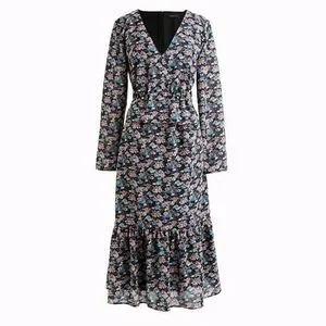 J. Crew Multicolor Floral Long Sleeve Dress