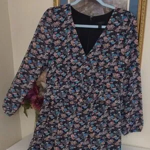 Chic floral dress with long sleeves. Features a flattering V-neck. Ideal for versatile styling.