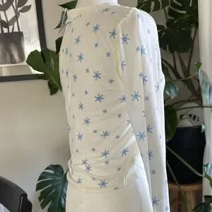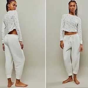 NWOT Free People Quilted Love Long Sleeves Snowflakes Ivory Top Crew Relaxed M