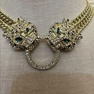 “eye candy” Gold-Tone Panther Choker Necklace w/ rhinestones & Gn. Crystal Eyes