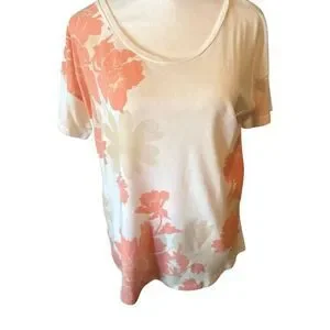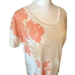 J.Crew Womens Tee Shirt, Size Medium, Short Sleeves, Collectors Tees. This casual tee shirt is perfect with jeans, shorts, jean skirts, slacks, so many options. With a white background it has tropical stylized flowers in an asymmetrical pattern. This is pre-loved, so has the typical slubbed feel to the fabric. So comfy! Fabric content: 60% cotton, 40% polyester. Easy care: machine wash / dry. Pit to pit: 21”. Total length: 24”. Good condition.