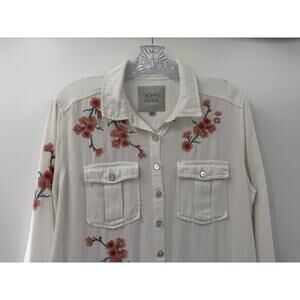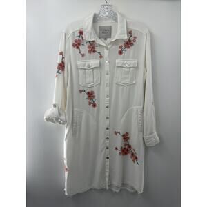 John Mark Women's Off White Floral Embroidered Shirt Dress Medium Country Chic