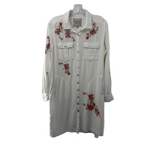 John Mark Women's Off White Floral Embroidered Shirt Dress Size Medium Country Chic (R1)