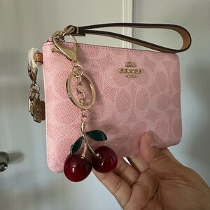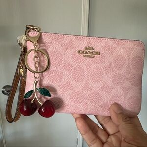 Coach corner Zip Wristlet Wallet with charms , super gorgeous powder pink with gold hardware
