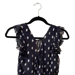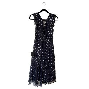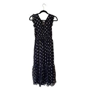 Lulus Ruffle Tiered Polka Dot Midi Dress in Navy and Silver