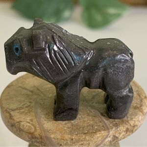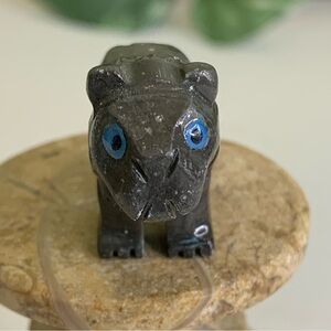 1.5" Gray Steatite Soapstone Carved Lion Miniature Stone Figurine with Blue Eyes.