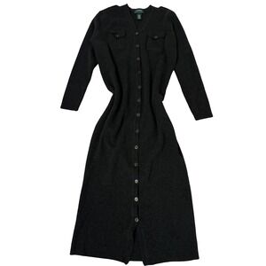 Lauren Ralph Lauren y2k 100% Merino Wool Ribbed Button Front Maxi Dress L d3