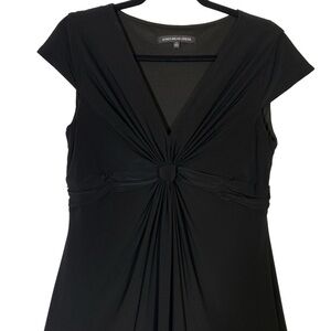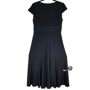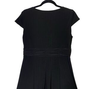 Jones Wear Dress size 12 Black Midi Plunge Neckline Short Sleeve Little Black