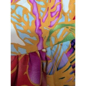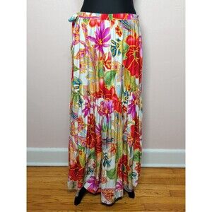 The Cynthia Rowley Wrap Skirt is a vibrant and stylish piece perfect for summer and spring occasions. This tropical floral skirt features a high-low ruffle design, making it ideal for travel, parties, or casual wear. The skirt is made of rayon fabric, machine washable, and includes an elastic waist for comfort. With a colorful multicolor pattern and a mid-rise fit, this boho skirt is a rare find that adds a pop of personality to any wardrobe, featuring a unique wrap style from the acclaimed Cynthia Rowley brand.