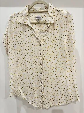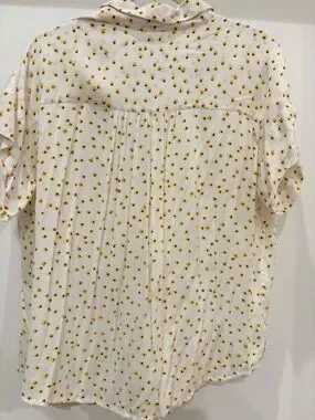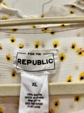 For The Republic White Button-Down Top with Yellow Floral Print - Size XL
