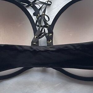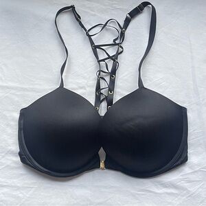 Victoria's Secret 34DD Very Sexy Push Up Bra Black Front Close Laceup Racerback