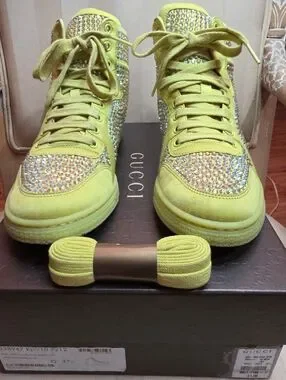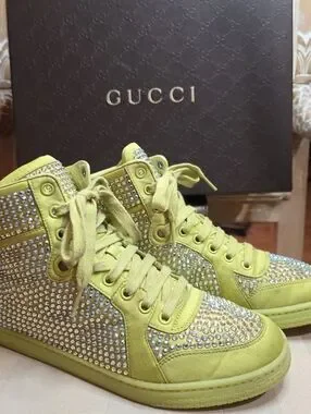 AUTHENTIC GUCCI SWAROVSKI CRYSTAL SHOES SIZE 37.5 EURO 7.5 US WITH ORIGINAL BOX