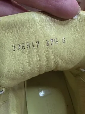 These shoes are in very good pre.Owned condition.There is some discoloring on the bottom of the sole. Again not visible when wearing.