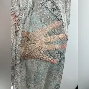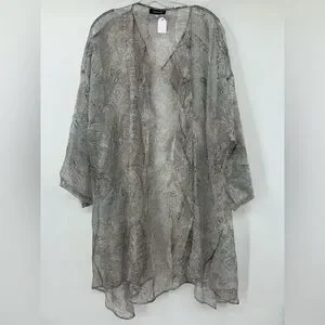 Eskander 100% Silk Sheer Organza Kimono Jacket Green Gray Paisley Size M/L $1000