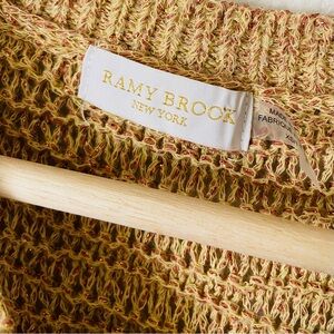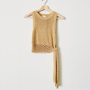 Ramy Brook XS Krystal crochet knit tie waist top in Gold