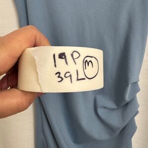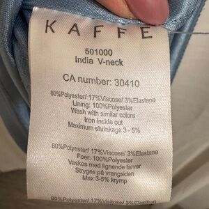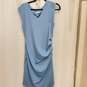 KAFFE sleeveless midi dress in a soft sky blue. V-neck design with a relaxed drape for comfortable, polished wear. Lightweight, versatile piece that transitions easily from work to weekend. Pairs well with sandals or heels for a refined look.