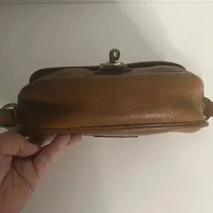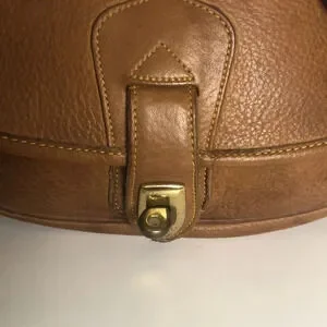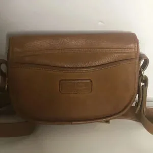 Super cute very vintage Dooney and Bourke saddle bag. Great vintage condition, hardware does show scratches and tarnishing but that is expected with a bag of this age. Please see photos for this unique stamp on the back of this bag and that it is upside down. Please ask any questions prior to purchase as all sales are final.