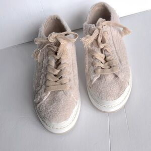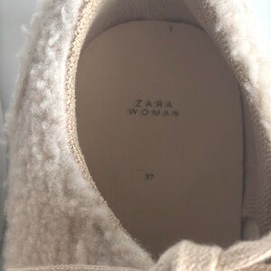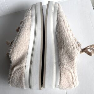 ZARA Woman Cream Ecru Shearling Faux Fur Platform Sneakers Size 7/37 NWOT