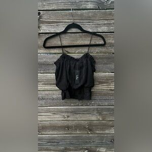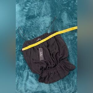 NWT Lulu's Black Peplum Spaghetti Strap Satin Ruffle Camisole Whimsical Boho Med