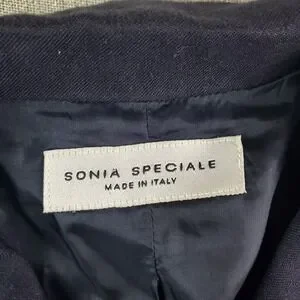Sonia Speciale Blazer Womens 42 Dark Blue Flax Linen Blend Half Lined Italy
